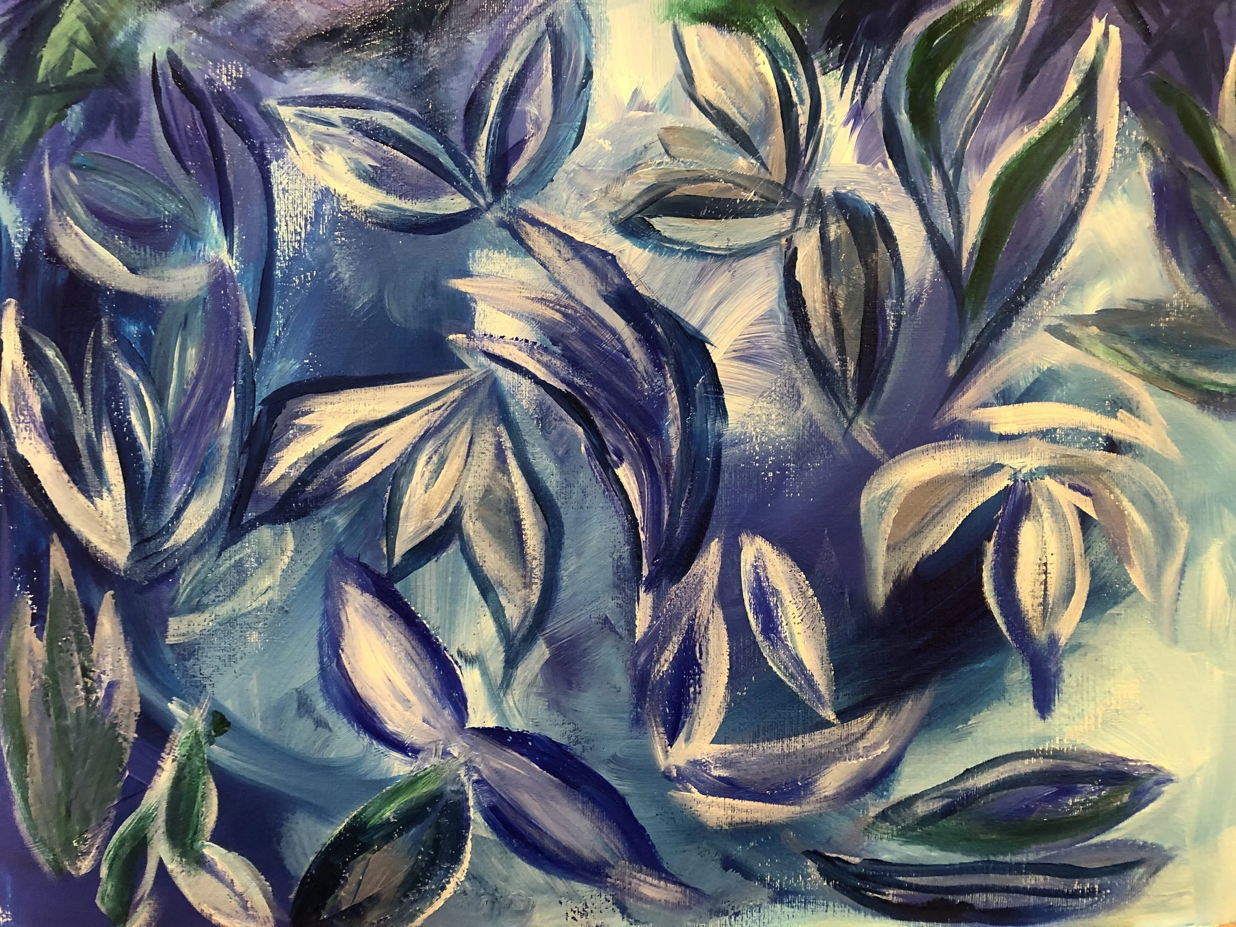 Nature is endless in the inspiration it can offer us artists. Just a few leaves glimpsed from different angles and in fading light inspired this painting.