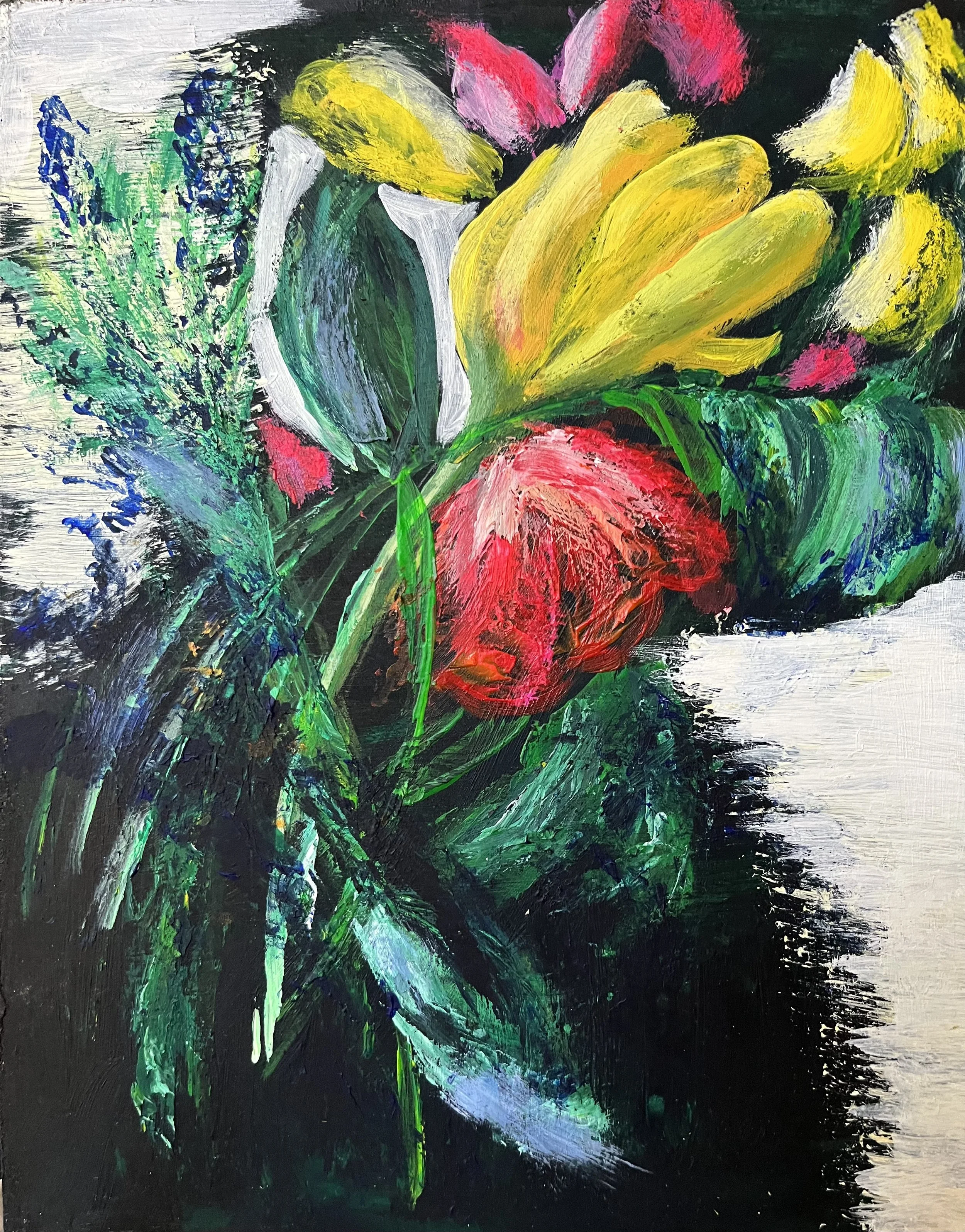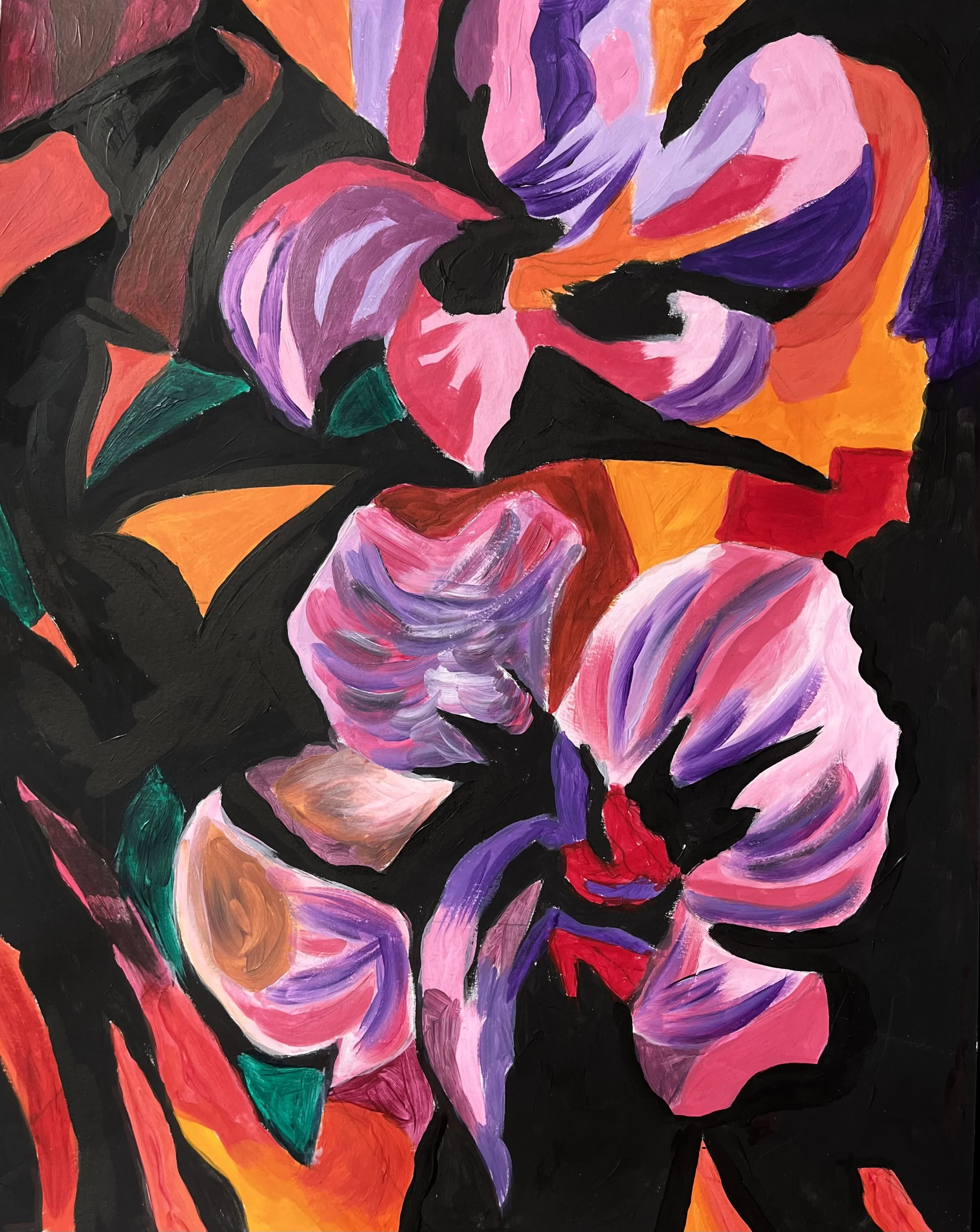 Som bright flowers just seem to dance on their own….so full of colour and life. Capturing that energy and joy in a painting is a fun challenge to take on. So I did…..